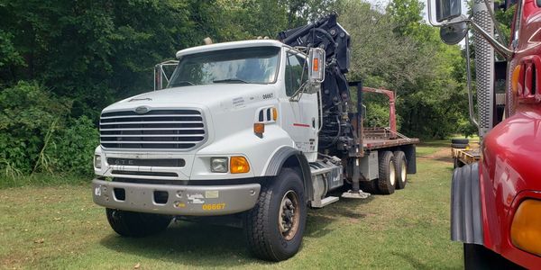 Our operation is built around a flatbed truck equipped with a knuckleboom crane, allowing us to load and unload materials directly without relying on site equipment.